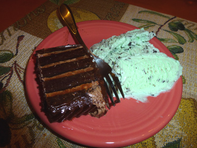 食後はチョコミントアイスクリームとケーキで