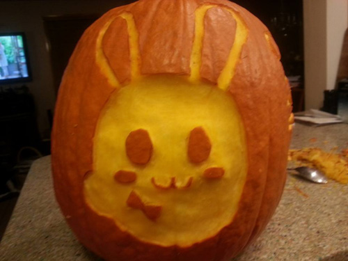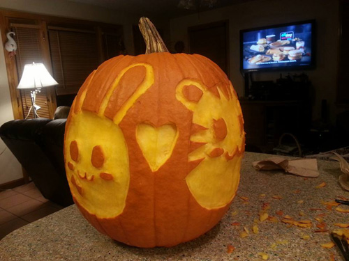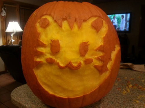 あと、ハロウィーンが近づいているので、パンプキンを彫りました!
