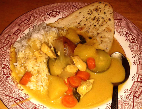 手作りイエローカレー。ココナッツミルクとパイナップルがお気に入り。