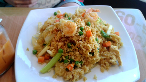 エイミーちゃんは海鮮入りのパイナップル・チャーハン。