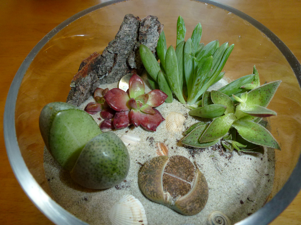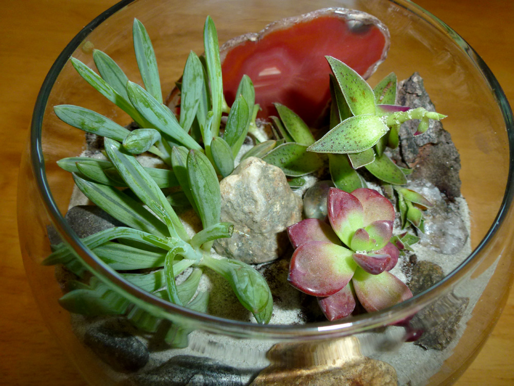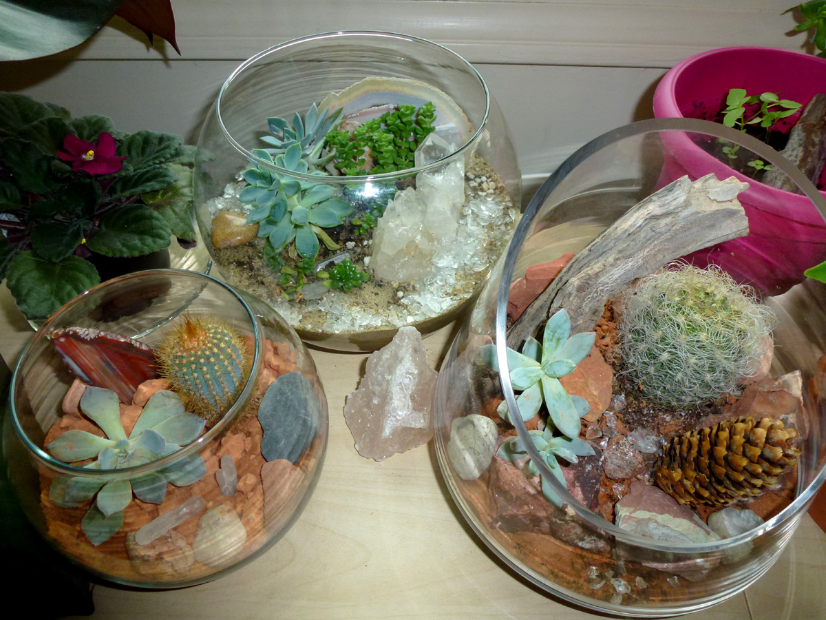 綺麗な鉱石と、サキュレント(多肉植物)が二種類。