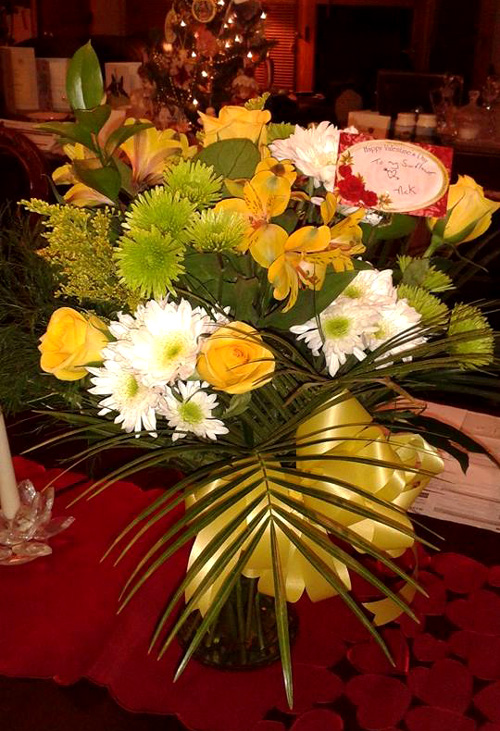 逆に大きな花束と、手作りの夕飯と、チョコレートと、プレゼントをもらいました。